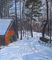 Thanks to good friend Yu-Ann, I got to visit MN Landscape Arboretum many times to enjoy the beauty of Minnesota four seasons. This painting was done before the cabin was renovated. 37"W X 27"H