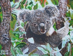 The Koala was first started as a gift for my ex-high school teacher Jennifer Bielen-Kim. I painted it as the koala is her favorite animal. The koala is considered one of the cutest animals I had even seen. The piece was painted on a 22 x 28 canvas and its medium I used is acrylic. The koala took three months to finish with the delicate details on the fur, the leaves, and the bark of the Eucalyptus trees the koala was clinging onto. I used a fan brush for certain occasional areas on the koala’s fur to soften up the areas. It wasn’t that easy at first, but delicate work all pays off! After finishing the koala, it was a successful painting that everyone loved it so much although I wanted to give it to Jenni. I had to paint another koala for her due to the aforementioned success of the first piece. The painting was chosen as a favorite among viewers who describe the creativity in its cuteness. 31.5" W x 25.5" H