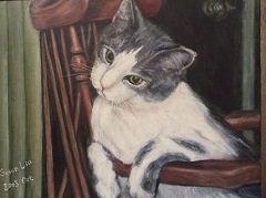 This cat called "Tiny", grew up to be a big cat. His twelve years' life gave my family lots of fun memories. Sometimes, he was the only family member my quiet son spoke to. Of course, he gave me some headaches, because I did not give him good discipline. I display Koosh ball here because it was his favorite toy. 21.5"W X 17.5"H