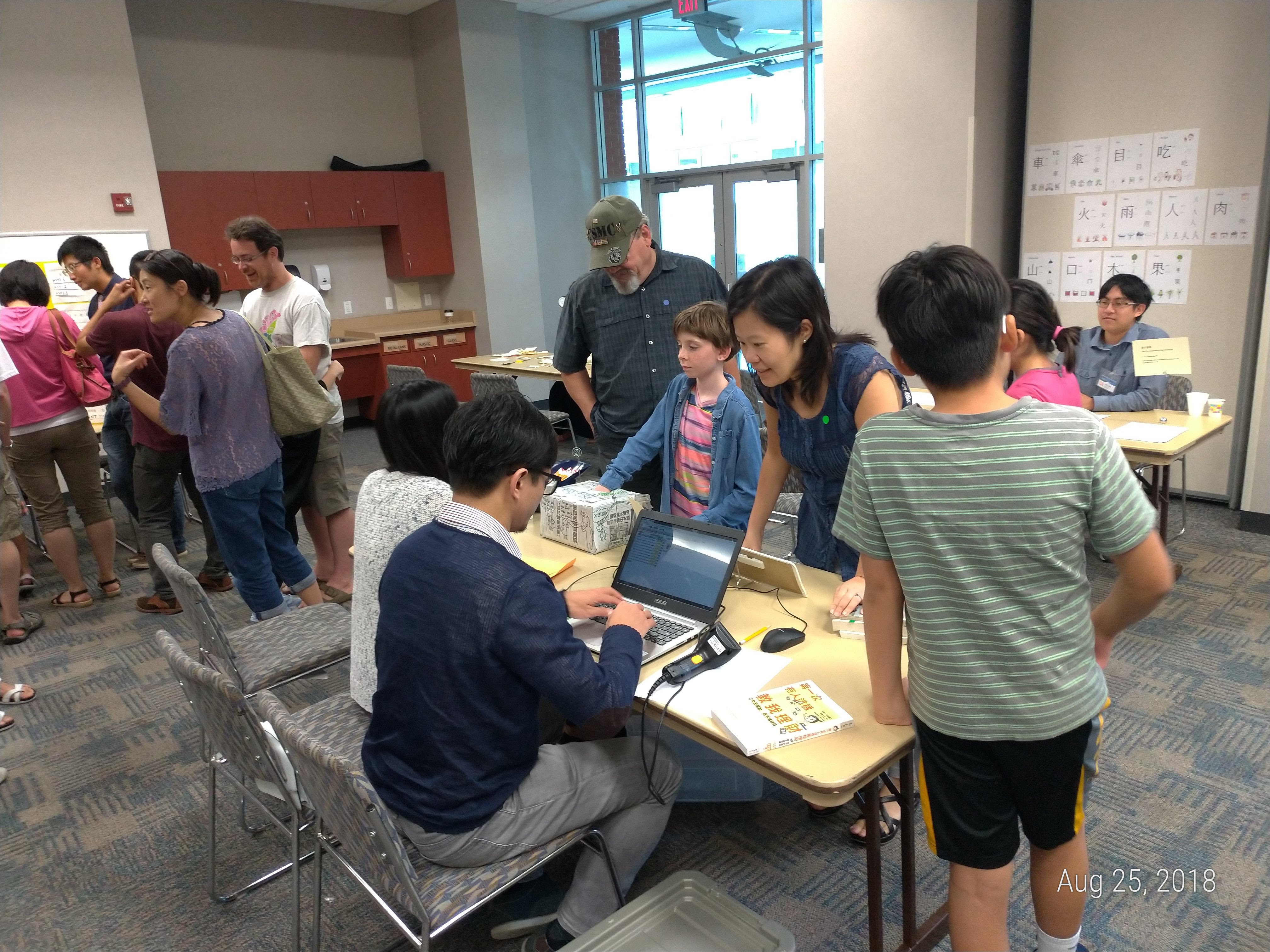 The Han festival this year starts with the speech that articulates how the modern technology carries on the historical characters, followed by a demo of an App, designed and developed by Taiwan Online Library. The purpose of this App is to help learners to link the pronunciation of objects by scanning the QR code for each word.
