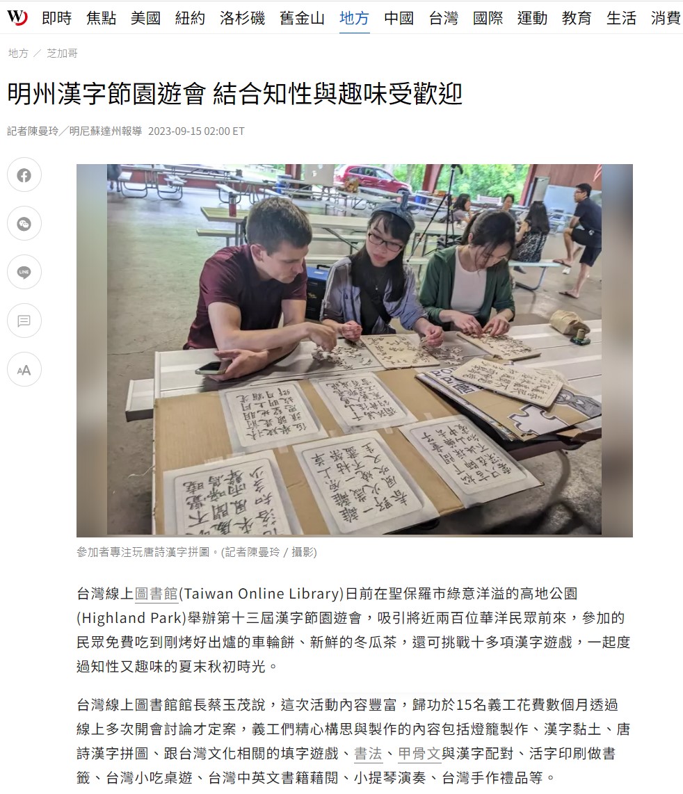除了吃喝玩樂的攤位之外,現場還有台灣線上圖書館的中文藏書供閲覽及借出,豐富您的精神生活。