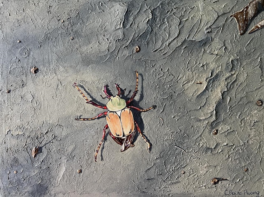 Fiona Chiang was born in 2016 in Minnesota. Both her parents are from Taiwan. She loves reading and drawing. Summer in 2024, one of her summer camps was canceled. Her mother suggested that they can have a “drawing camp” at home instead. Seeing mom drawing cicadas inspired her to draw a cicada, too. She came up with the idea of this incredible artwork.