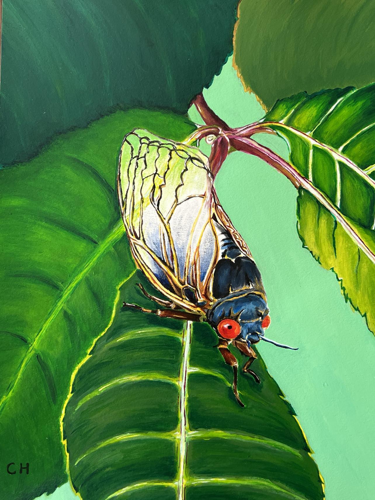 When the artist drew this cicada, she noticed that one antenna was shorter than the other one.